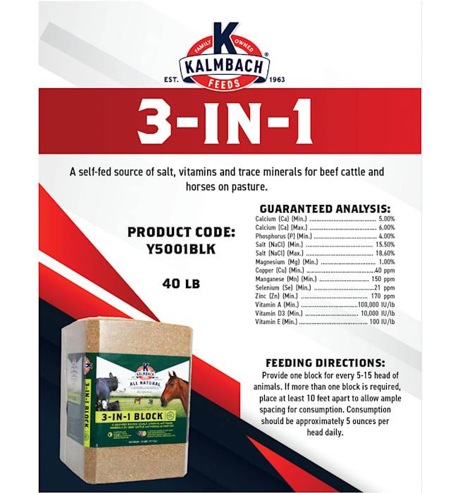 Your Kalmbach Feeds 3-In-1 Trace Mineral Block delivery options may vary depending on where you are in a city. Enter your address to browse Kalmbach Feeds 3-In-1 Trace Mineral Block delivery options near you.