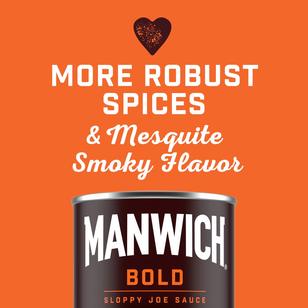 Your classic sloppy joe mix just got bolder with Manwich Bold Sloppy Joe Sandwich Sauce. Savory spices blend with a rich tomato puree base for a bold spin on your favorite sloppy joe sauce. Just four easy steps to satisfy your hunger. Thoroughly cook ground beef or ground turkey, add Manwich sloppy joe sauce, serve and dig in. It makes the perfect classic sloppy joe, and is also great in tacos, meatloaf, dips, chili and more. Great for a quick weeknight meal or hearty lunch option, just don't forget the napkins! Stock up and make every night a Manwich night!