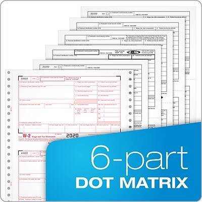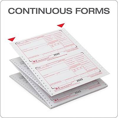 Have the right form on hand for 2020 with these W2 tax forms made for pin-fed printers. Get the 2020 IRS Form W2 on continuous feed paper for pin-fed dot-matrix printers. Pack includes 24 6-part W2s and 3 W3 forms. - Use Form W-2 to report employee wages, tips and taxes withheld to the Social Security Administration - 2020 W-2 forms must be mailed or e-filed to the SSA and furnished to your employees by February 1, 2021 - 6-Part W-2 forms print 2 to a page on 12 micro perforated sheets with copies A, 1, B, C, 2 and D - Adams continuous tax forms are dot matrix printer compatible - Pack contains 24 W-2 Continuous pin-fed forms and three W-3 summary forms - Sheet Size: 9-1/2 x 11 Detached Size: 5-1/2 x 8-1/2 - White forms have scannable red ink Copy A and W-3 required by the IRS for paper filing - Acid-free paper and heat-resistant inks produce smudge-free, archival-safe records - Meets or exceeds IRS specifications - Accounting software and QuickBooks compatible Prepare your tax forms faster! Try Adams Tax Forms Helper Online 2020* Generate your 2020 tax forms with minimal data entry and anxiety. Adams Tax Forms Helper Online makes filing simple, affordable and painless. For online tax preparation of the 2020 1099-MISC, 2020 1099-NEC, W-2, 1096, W3, 1099-INT, 1099-R, 1099-DIV, 1098 and ACA forms. E-file or print and mail—we're flexible. Adams Tax keeps your filing options open. High-quality Adams tax forms work seamlessly with Adams Tax Forms Helper Online—an authorized IRS e-file provider. Choose faster, safer filing. When e-filing, Adams Tax uses 256-bit AES encryption for military-grade classified data storage. Your tax data is transmitted to federal agencies with secure TLS protocols to ensure end-to-end authentication, privacy and data integrity that's both faster and safer than snail mail. Use quick & easy imports. Pull tax data from the previous tax year or import from a CSV file. Even if you didn't use Adams Tax last year, you can stop rekeying and start enjoying life. Error-proof your work. Tax Forms Helper creates your 1096 and W-3 summary forms, no math anxiety required. Gives you error-free summary reports to minimize costly IRS penalties. For CPAs, accountants, households and small businesses. Whether you report income for a nanny or 1,000 employees, you can prepare professional W-2s and 1099s. Go full service and relax. With Print and Mail service, you can cut your workload in half! E-file and let us mail your employees/recipients so you don't have to. Additional fees apply. *Not included in this pack.