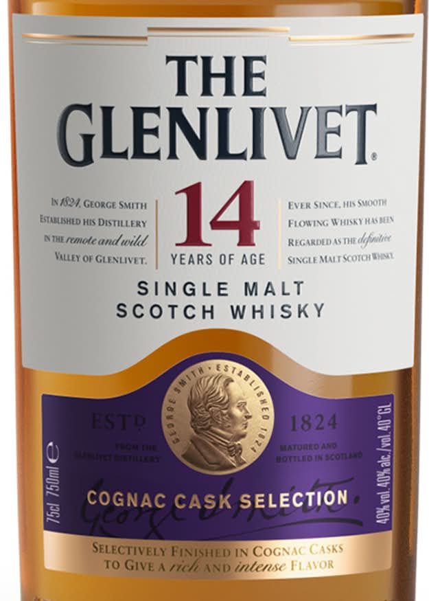 Inspired by Captain Bill Smith Grant, great-grandson of The Founder George Smith, The shines as a proud celebration of the Speyside craft. This luscious liquid is matured in bourbon and sherry casks before being finished in the highest quality ex-Cognac casks. • Alcohol by volume: 40% • The Glenlivet Distilling Company, New York,NY