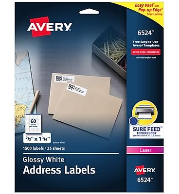 Avery Easy Peel Laser Address Labels, Glossy White (25 x 30 ct)