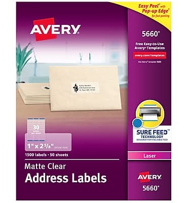Avery Address Labels With Sure Feed Technology, 8660, Rectangle Clear