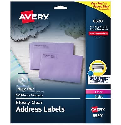 Avery Easy Peel Address Labels, Glossy Clear (600 ct)