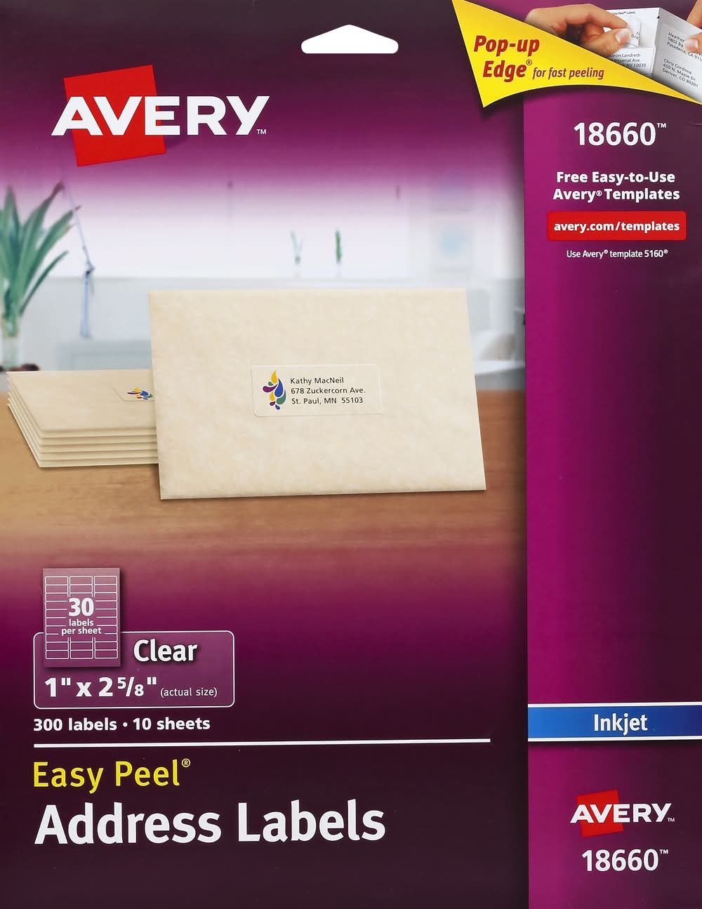Avery Easy Peel Inkjet Address Labels (10 ct)