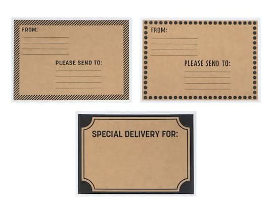 Celebrate It Kraft Address Labels, 3.5 Inch x 5 Inch, Brown - Black (15 ct)
