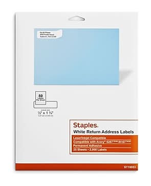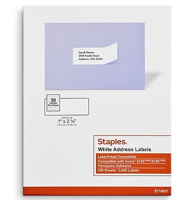 Staples Laser Inkjet Address Labels, White (7500 ct)