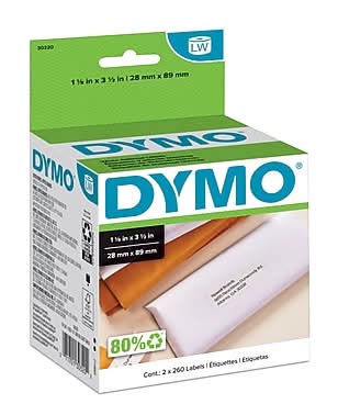 DYMO Label Writer Mailing Address Labels 260 Labels/Roll 30320, Black on White (8.4 oz, 2 ct)