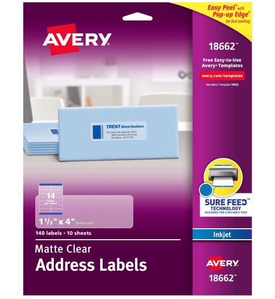 Avery Return Address Labels With Sure Feed Technology 15667, Matee Clear (800 ct)