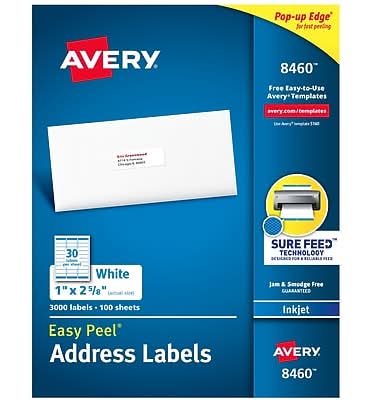 Avery Easy Peel Address 3000 Labels 8460, 1 x 2-5/8,, White (100 ct)