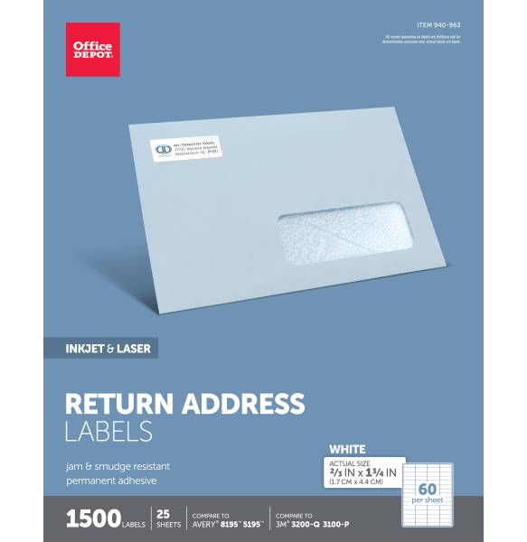 Office Depot Inkjet and Laser Return Address Labels, 2/3in. x 1 3/4in, White (25 ct)