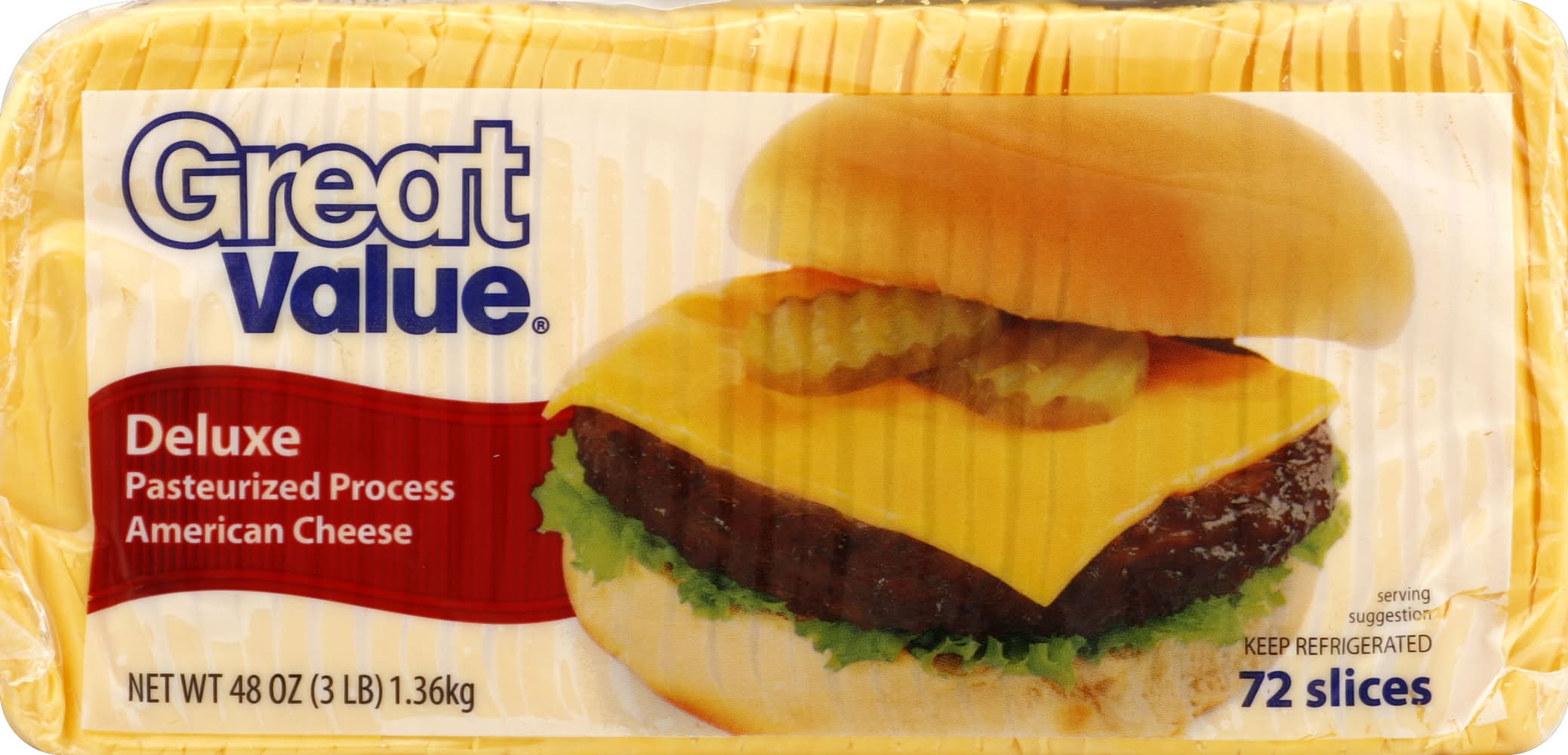 Great Value Deluxe Pasteurized Process Cheese (48 oz, 72 ct)