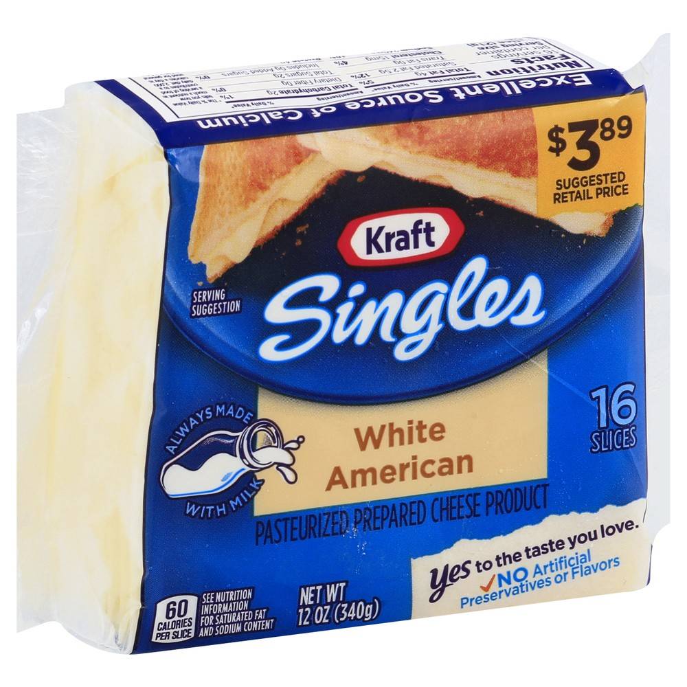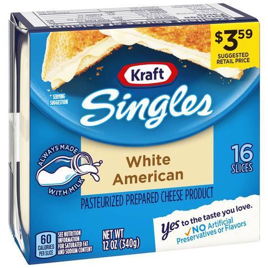 Kraft Singles White American Cheese Product (12 oz, 16 ct)
