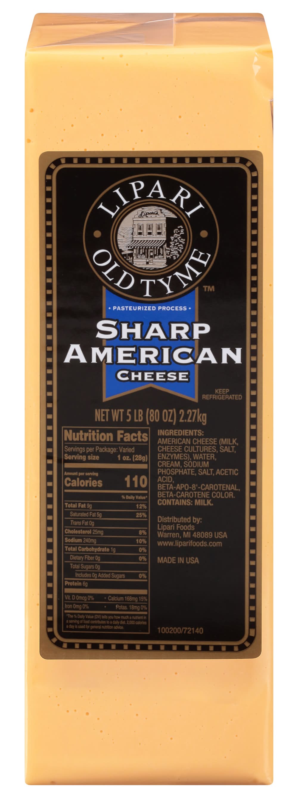 Lipari Old Tyme Sharp American Cheese (5 lbs)