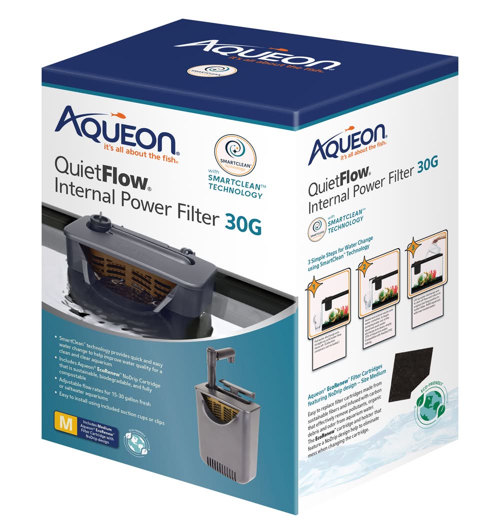 Aqueon Quietflow Internal Power Filter 30g With Smart Clean Technology, Medium
