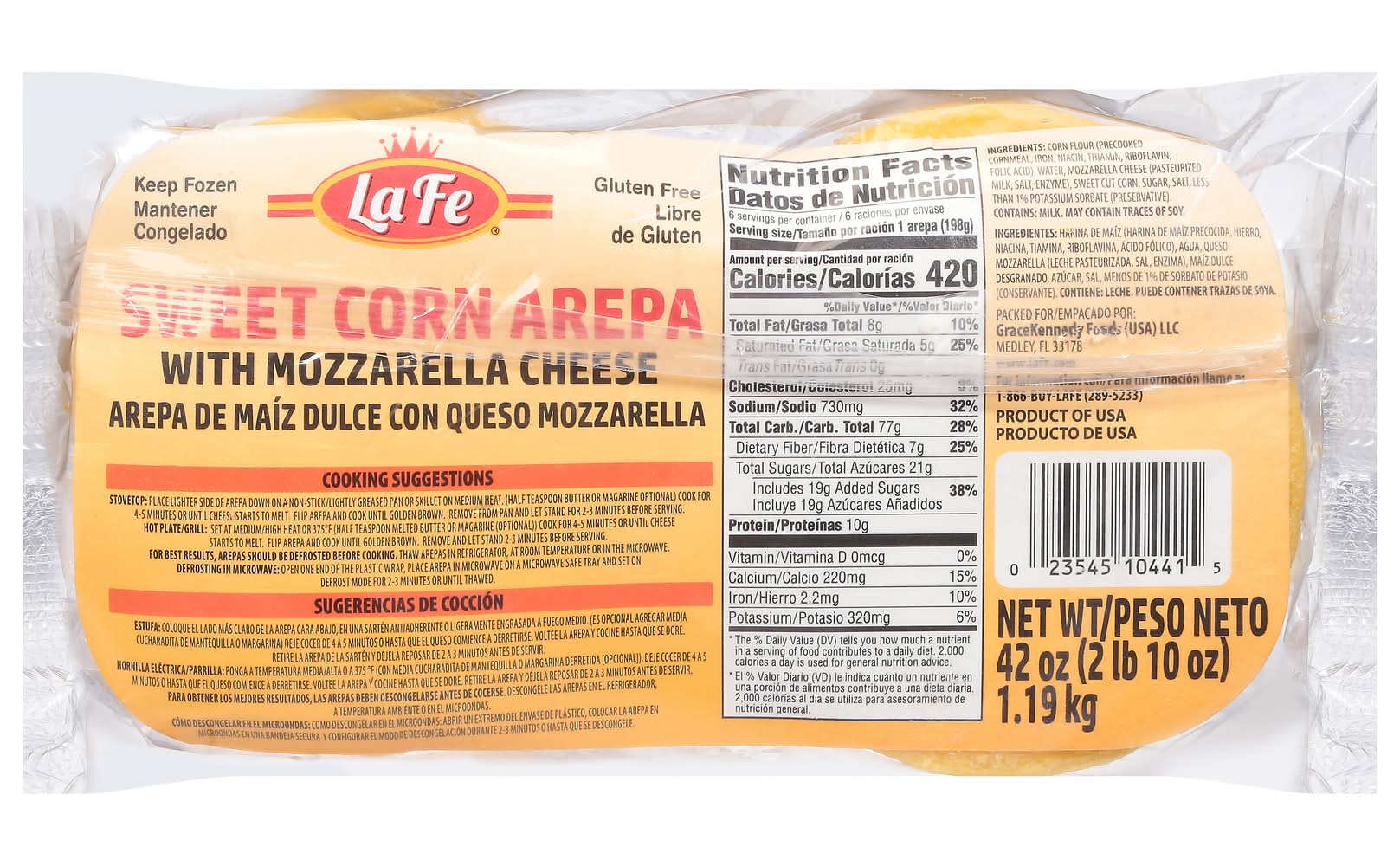 La Fe Sweet Corn Arepa With Mozzarella Cheese (42 oz)