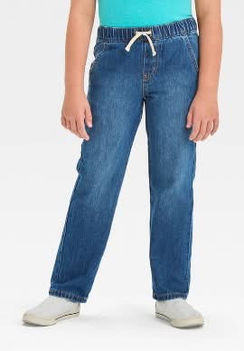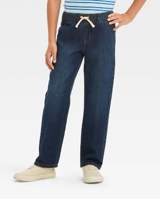 Cat & Jack Boys Straight Fit Pull on Pants, 8, Medium Wash