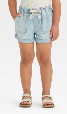 Cat & Jack Toddler Girls' Denim Pull on Shorts, 4T, Light Wash