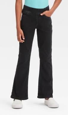 Cat & Jack Girls' Mid Rise Pull on Flare Jeans, 12, Black