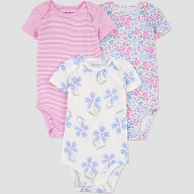 Carter's Just One You Baby Girls Floral Bodysuit, 9M, Assorted (3 ct)