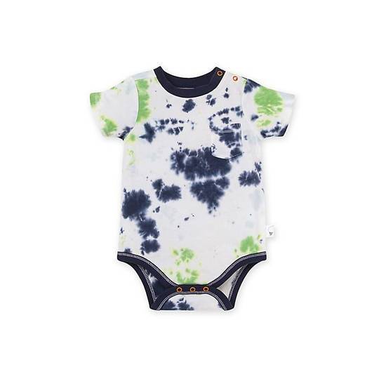 Burt's Bees Short Sleeve Beachy Tie Dye Bodysuit in Bllue Green Multi