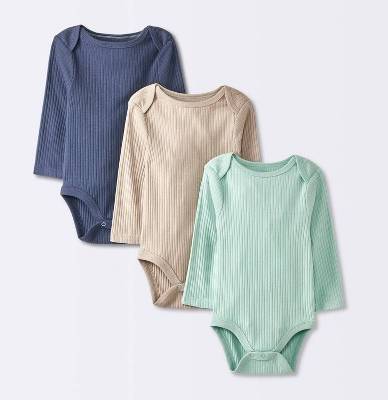 Cloud Island Baby Long Sleeve Wide Ribbed Bodysuit 0-3m, S, Assorted (3 ct)