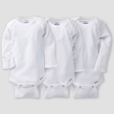 Gerber Baby Long Sleeve Bodysuit, 6-9 M, White (3 ct)