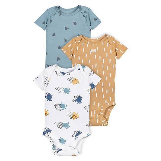 Lamaze White/Blue/Yellow Size 18m 3-pack Turtles Organic Cotton Short Sleeve Bodysuits