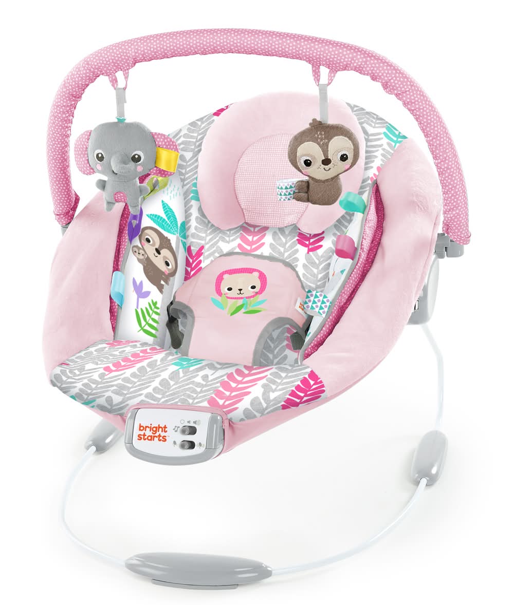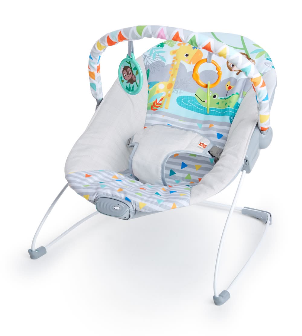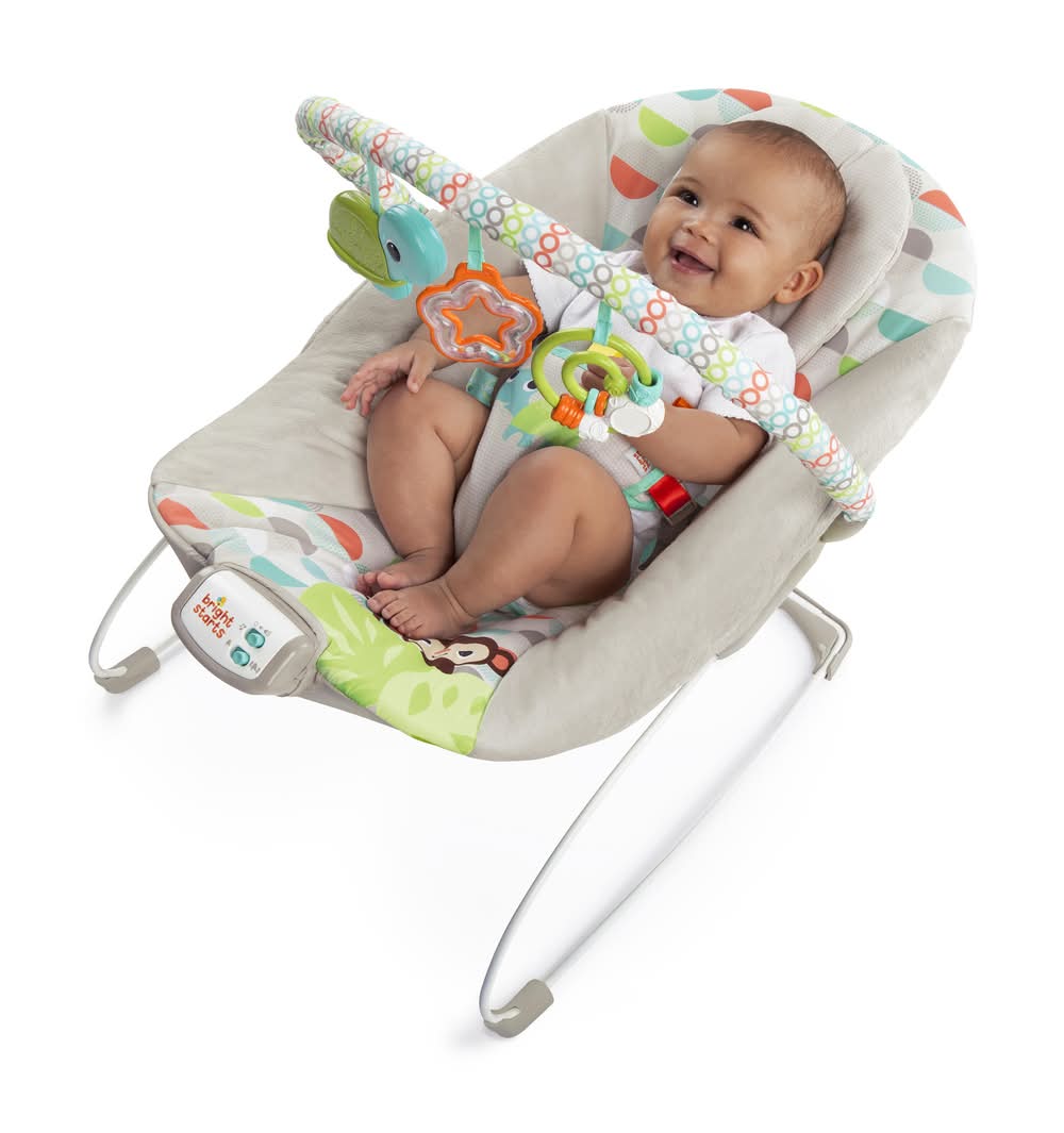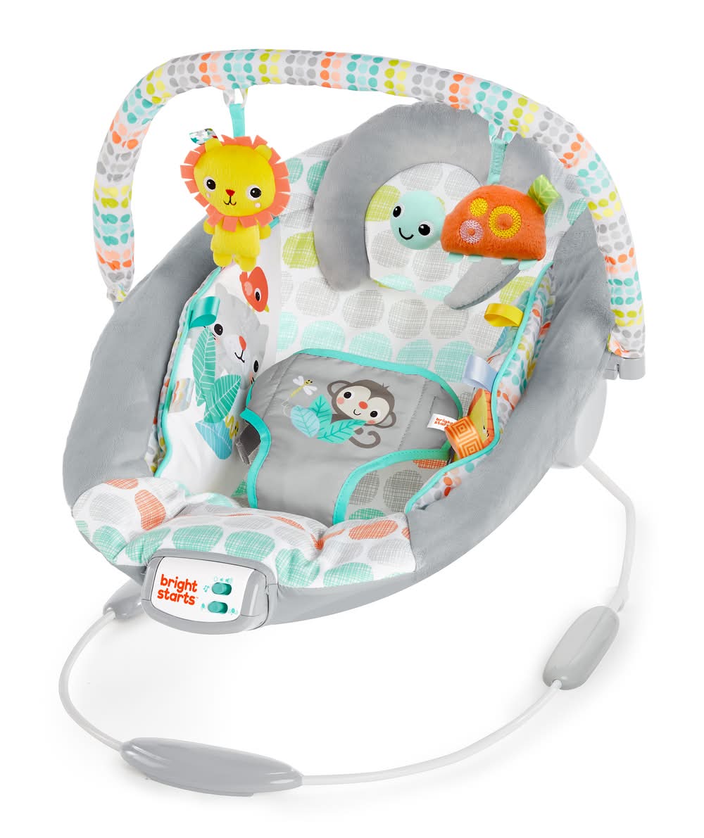 Bright Starts Happy Safari Vibrating Baby Bouncer Seat With Toy Bar