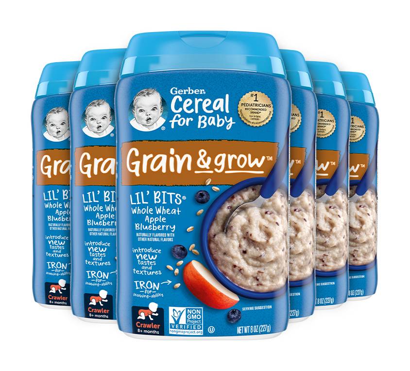 Gerber Lil' Bits Whole Wheat Cereal For Baby, Apple- Blueberry (6 x 8 oz)