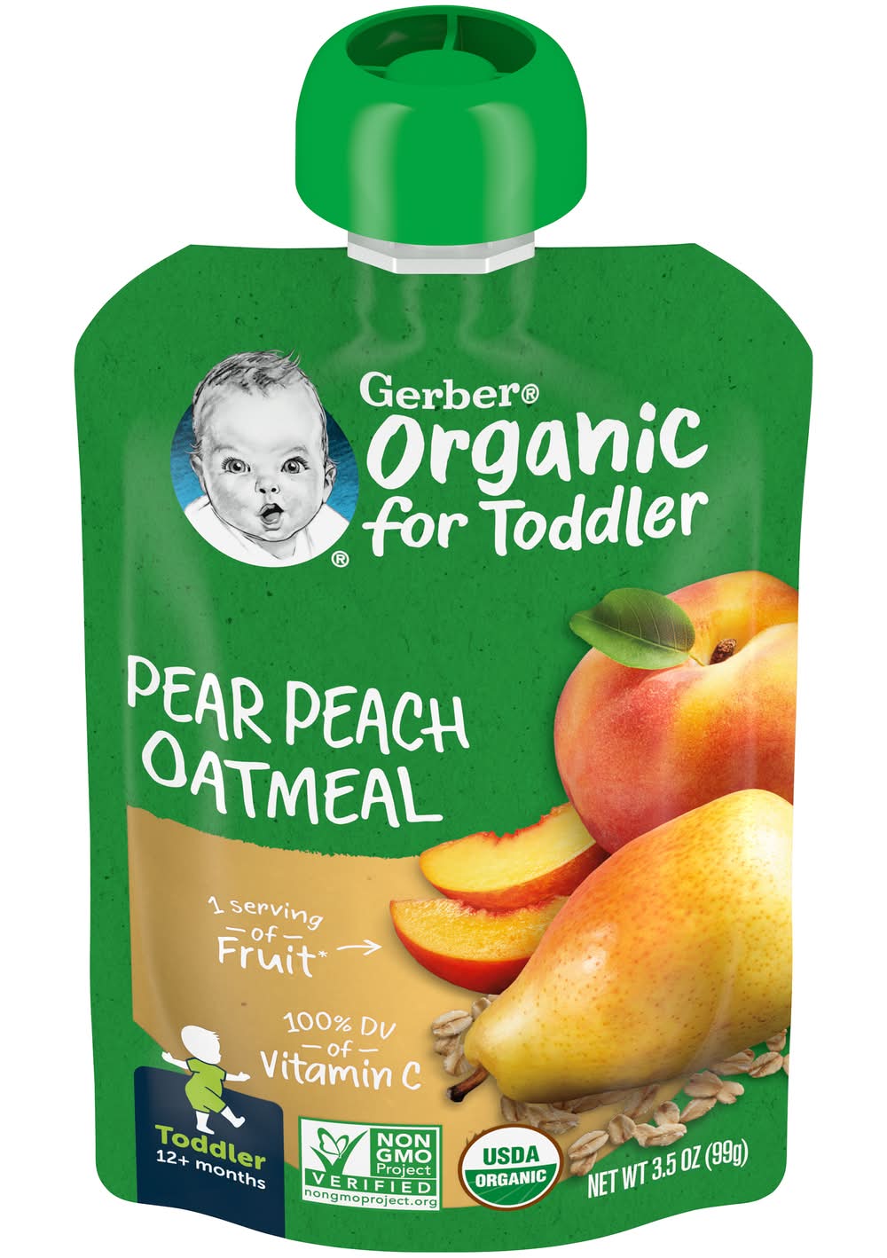 Gerber Toddler Organic Pear Peach & Oatmeal Baby Food (3.5 oz)