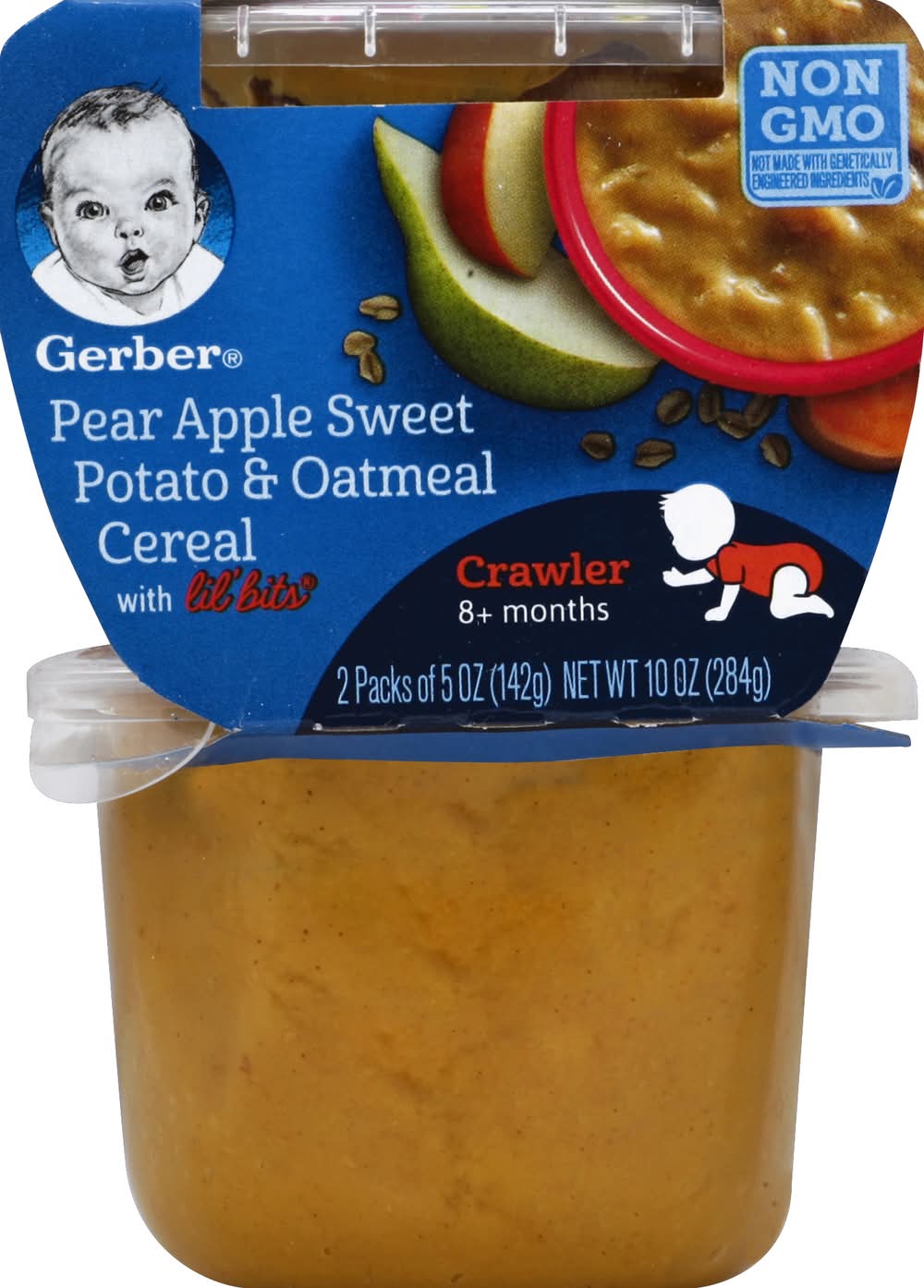 Gerber Baby Food With Pear Apple Sweet Potato & Oatmeal Cereal, 8+ months (10 oz, 2 ct)