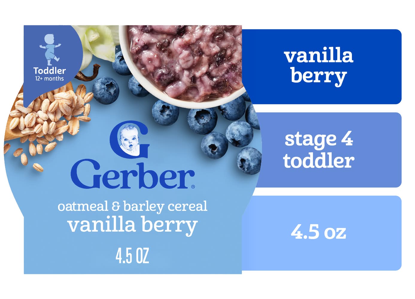 Gerber Oatmeal & Barley Cereal Baby Food, Toddler 12+ Months, Vanilla Berry (4.5 oz)