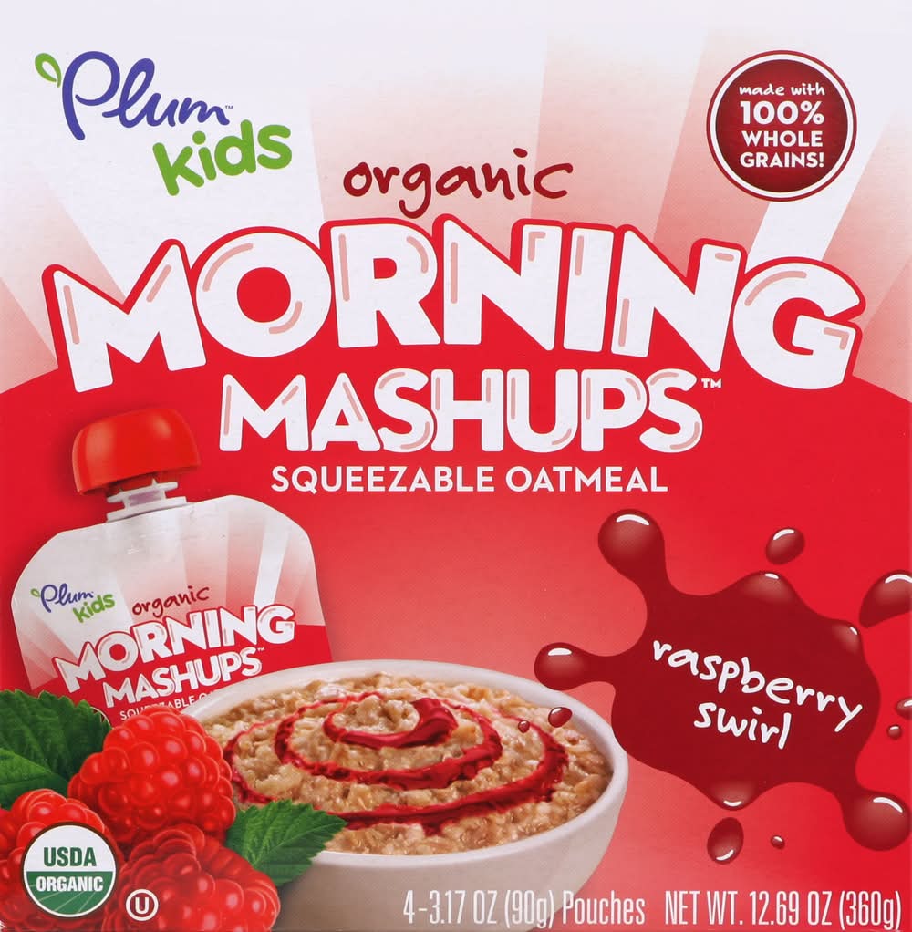 Plum Kids Organic Morning Mashups Squeezable Oatmeal, Raspberry Swirl (3.17 oz, 4 ct)