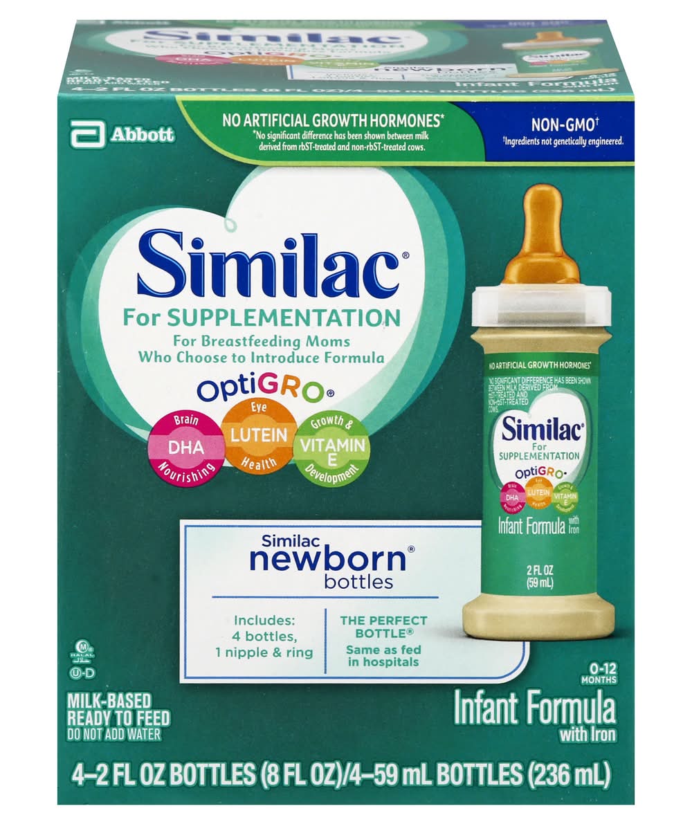Similac For Supplementation Gentle, Non-Gmo Infant Formula, For Breastfed Babies, With Prebiotics, Supports Brain & Eye Development, Ready To Feed (4 ct)