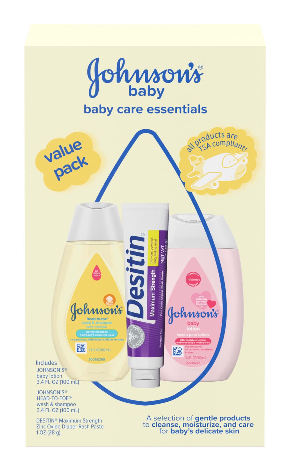 Johnson's Baby Care Essentials Travel-Size Gift Set (8.09 oz, 3 ct)