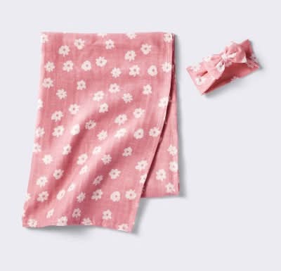 Cloud Island Hospital Muslin Swaddle and Headwrap Gift Set, Pink (2 ct)