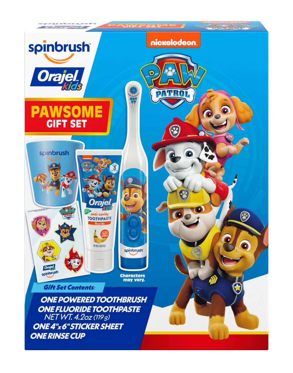 Orajel Paw Patrol Oral Care Gift Set Spinbrush Toothbrush Kids Fluoride Toothpaste (4.2 oz)