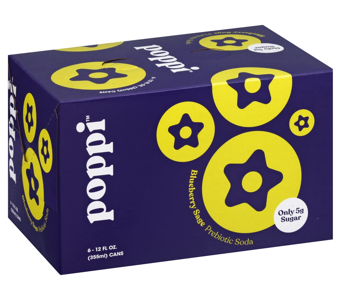 poppi Blueberry Sage Prebiotic Soda (12 fl oz, 6 ct)