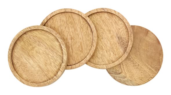 Kamenstein Round Acacia Coaster Set With Recess, 4 in (4 ct)