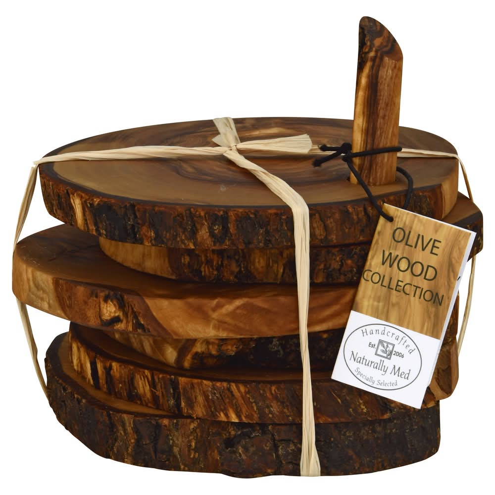 Naturally Med Olive Wood Collection Rustic Coaster Set, Brown