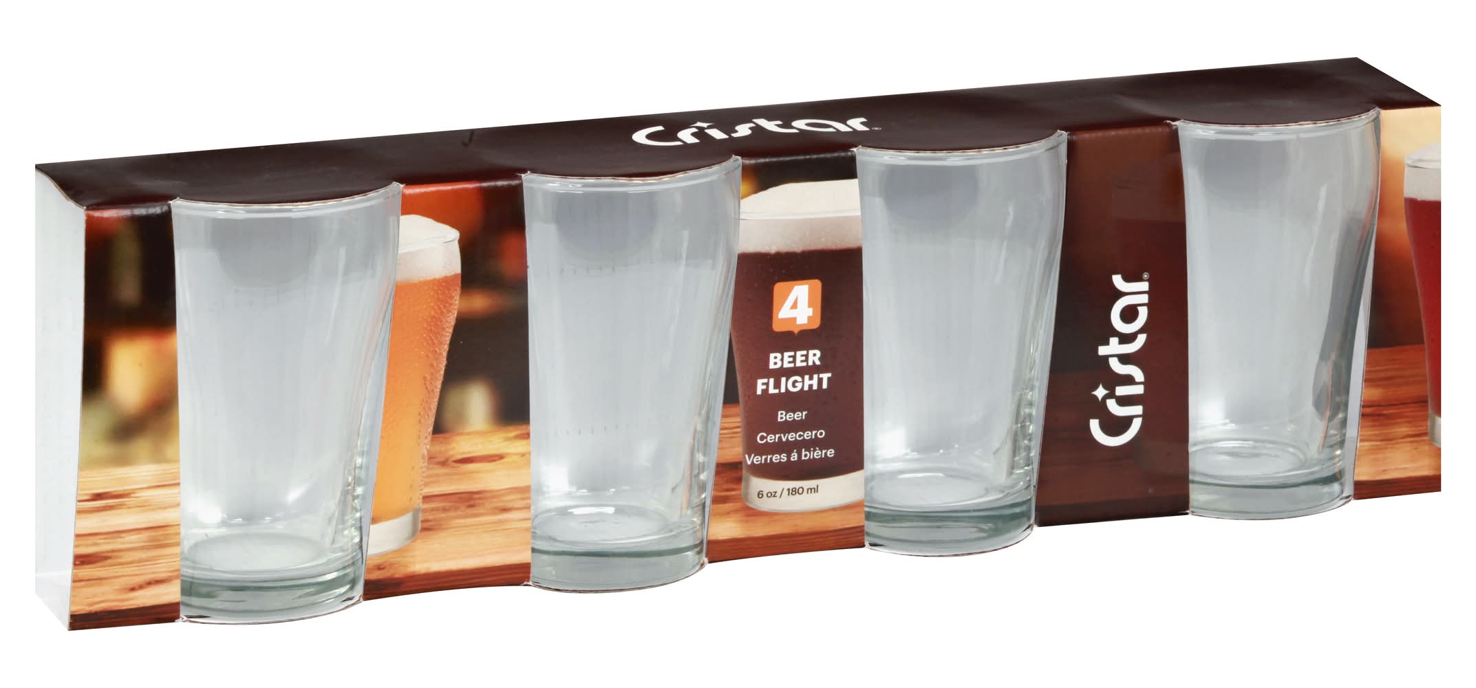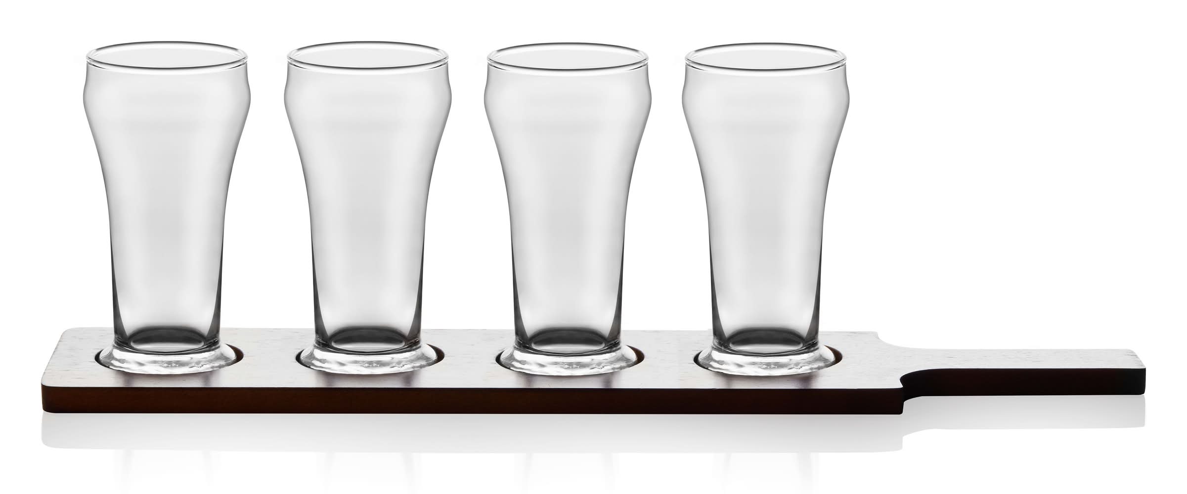 Libbey Craft Brews Beer Flight Glass Set With Wood Carrier (4 ct)