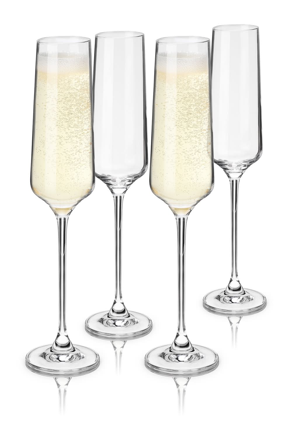 Viski Champagne Flutes 4 Lead-Free Crystal Sparkling Wine Glasses European Made Glassware Stemmed Wine Glass Set