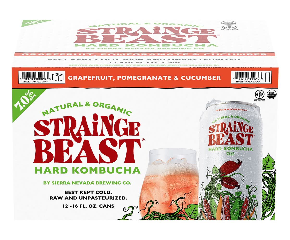 Strainge Beast Natural & Organic Hard Kombucha, Grapefruit-Pomegranate