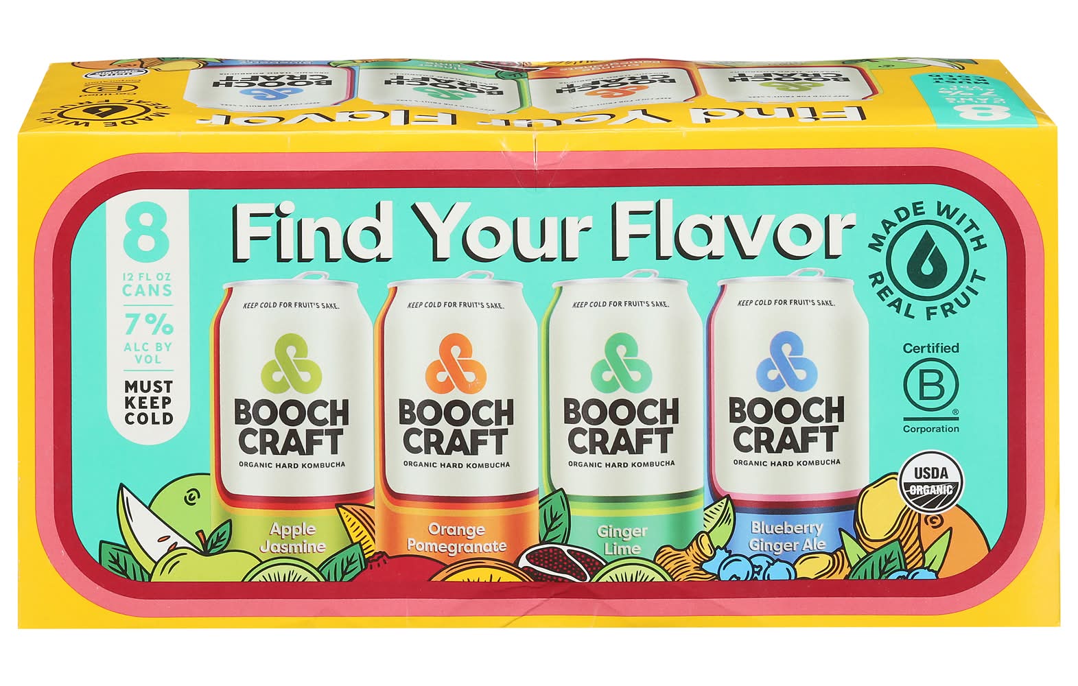 Boochcraft Organic Hard Kombucha, Assorted (8 x 12 fl oz)