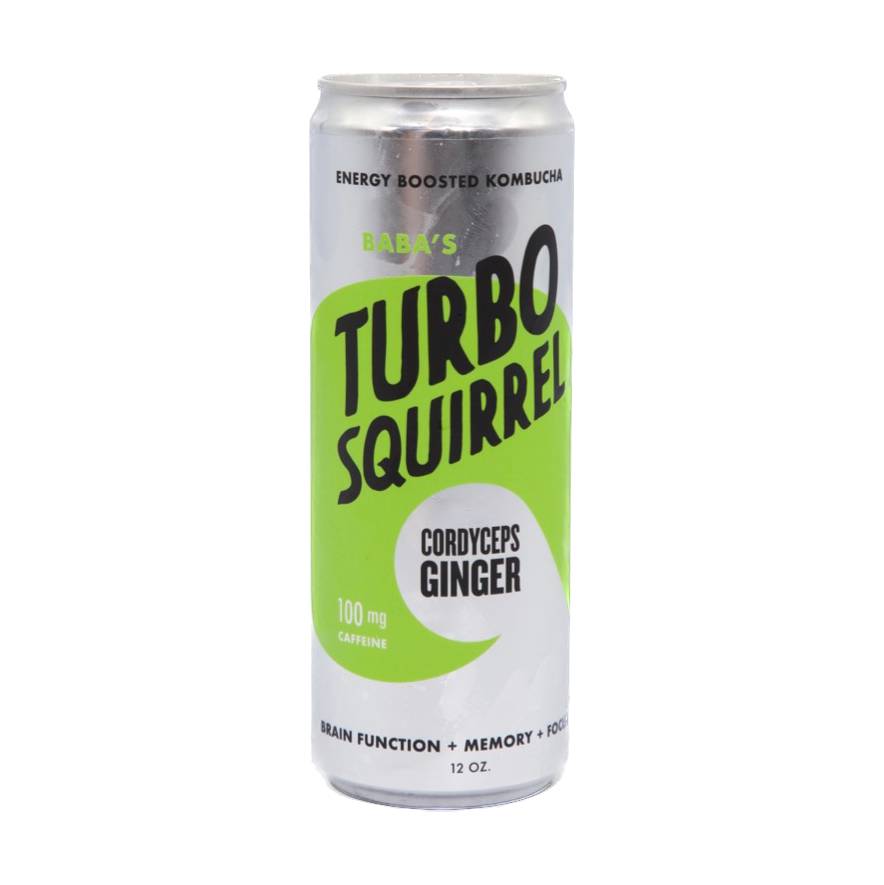 Baba's Turbo Squirrel Energy Boosted Kombucha, Cordyceps Ginger (12 x 12 oz)