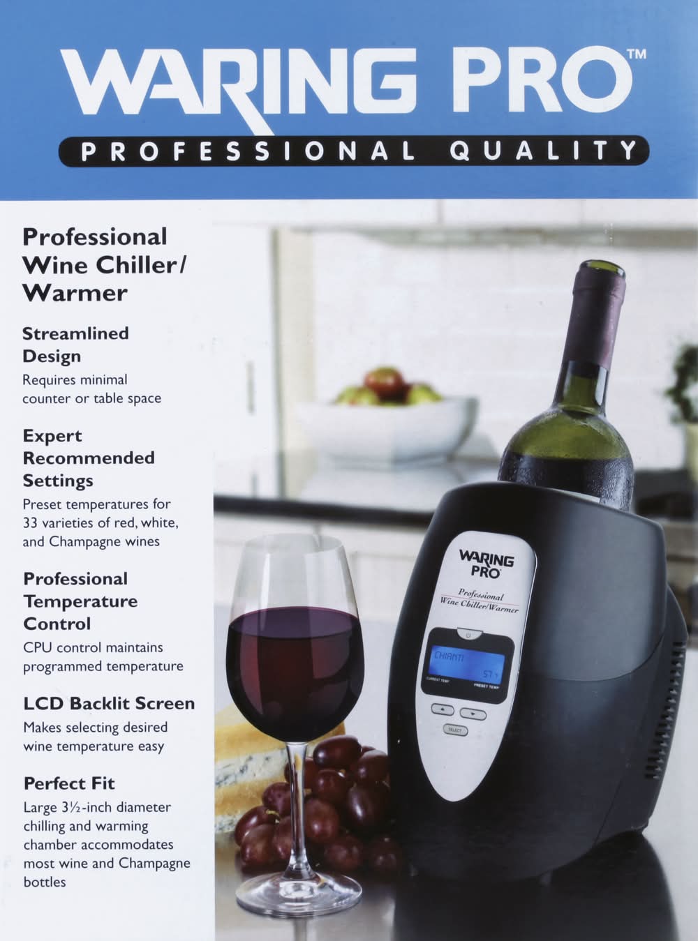 Waring Pro Professional Wine Chiller/Warmer, Black/Stainless