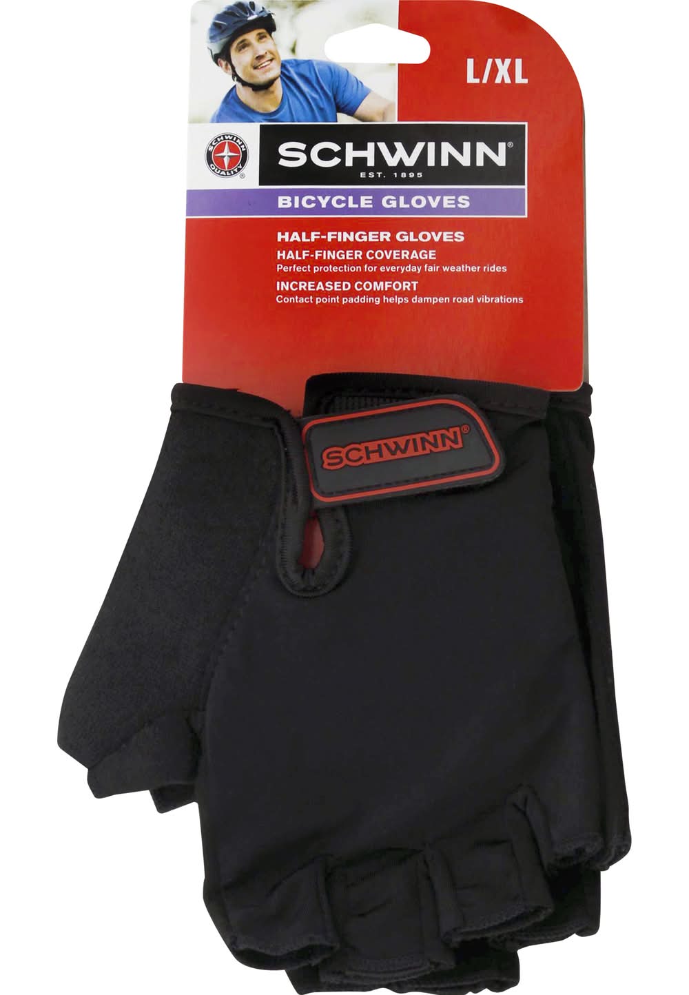 Schwinn Bicycle Half-Finger Gloves, L / XL, Black