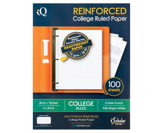 iScholar New York Heavyweight Reinforced College Ruled Paper, White (20 lbs, 100 ct)