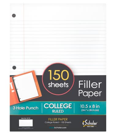 College Ruled Filler Paper Sheets, 10.5x8 in (150 ct)