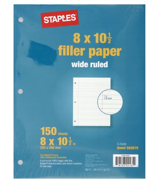 Staples Filler Paper, 8 x 10 1/2 inch (150 ct)